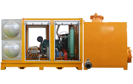 設備由柴油發電機組提供動能,并將所有結構部件集成在同一鋼制底盤上,便于吊裝,可隨時裝載于工程車輛上執行路面清洗任務。全自動操控面板,只需調節柴油機轉速即可實現設備各壓力等級的輸出,以達到不同的清洗效果。