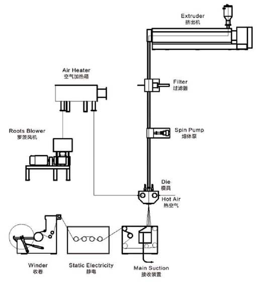 漢諾工業泵HNP熔體計量泵為國內熔噴無紡布生產企業提供優質的計量、過濾設備。熔噴布生產工藝流程:原材料---->熔融擠出---->過濾---->計量(HNP熔噴布計量泵)---->空氣加熱壓縮---->熔噴---->成網---->收卷。